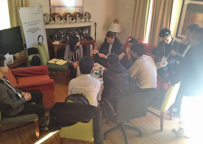 每年的CES关于科技、电子厂商来说都是一场盛宴,,,,,许多重量级新品都会在CES上宣布。。。今年在美国拉斯维加斯举行的CES2014上,,,,,我司就举行了盛大的客户晤面会,,,,,宣布了最新推出的骨传导,,,,,智能可衣着装备,,,,,触摸蓝牙等多款新品,,,,,成为展示中众人瞩目的焦点。。。
